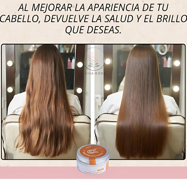 Está formulado con ingredientes naturales como cera de karité, mango, colágeno y elastina, que nutren profundamente tu cabello.